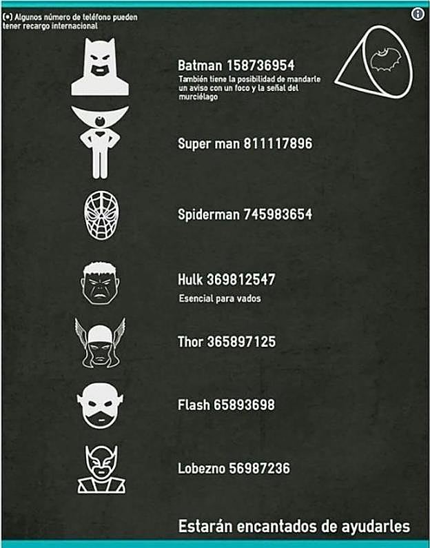 Este es el texto que han acompañado de una imagen en la que muestran varios conocido superhéroes, con 'números' a los que recurrir.