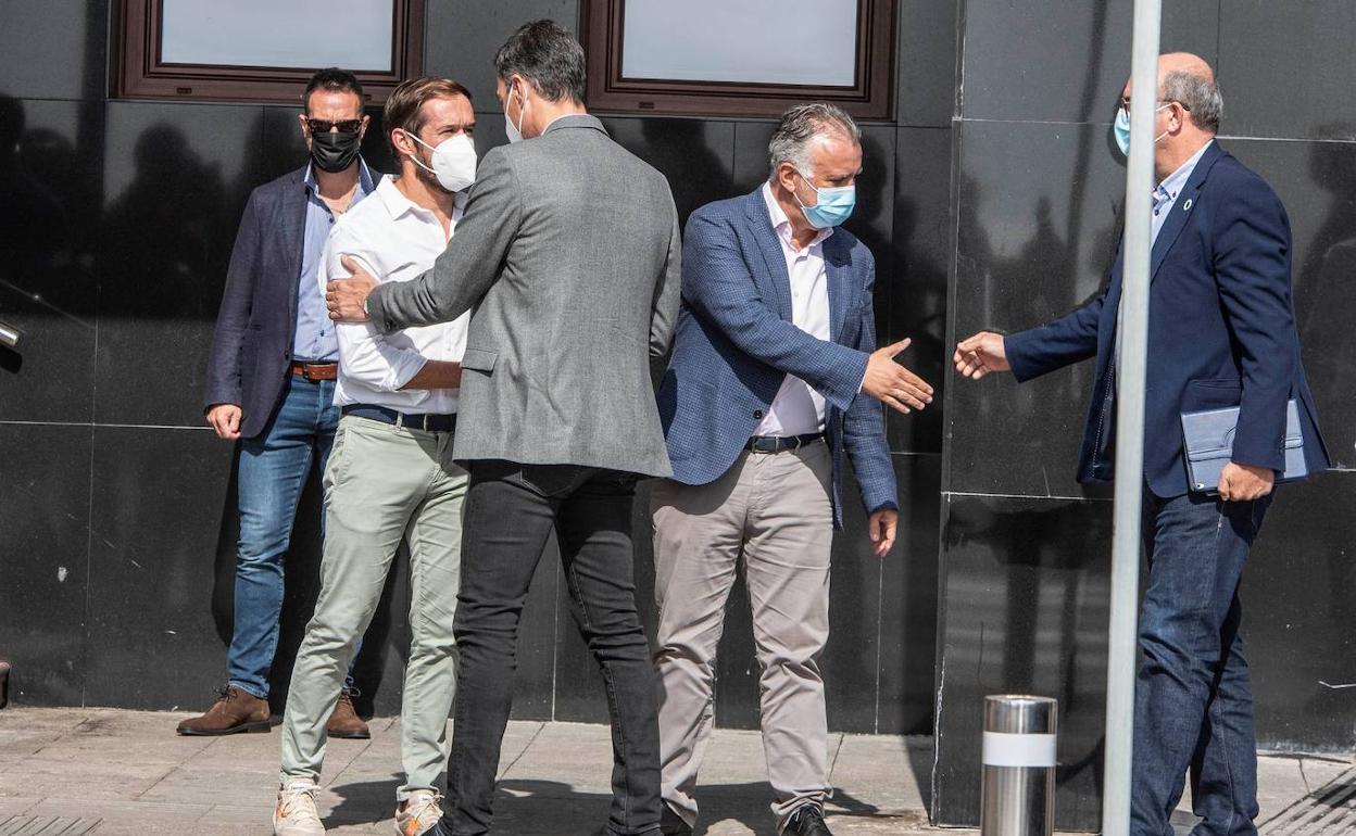 «En este momento de zozobra, los palmeros y palmeras tienen que tener la seguridad de que no se van a quedar atrás», apuntó Sánchez durante una comparecencia en la isla, en su tercera visita a este territorio desde que hace dos semanas comenzó la erupción del volcán Cumbre Vieja. Con esta presencia continua en la isla, el presidente quiere visibilizar «toda la solidaridad del pueblo español» con los palmeros y «la fortaleza de la respuesta del Estado». «Vamos a estar para abordar la tarea enorme de reconstruir La Palma y de ofrecer un horizonte de prosperidad, de progreso y de tranquilidad», insistió. El pasado martes, el Ejecutivo aprobó un primer paquete de ayudas directas de 10,5 millones de euros destinado a que las personas que perdieron sus viviendas puedan adquirir otras, además de enseres de primera necesidad.