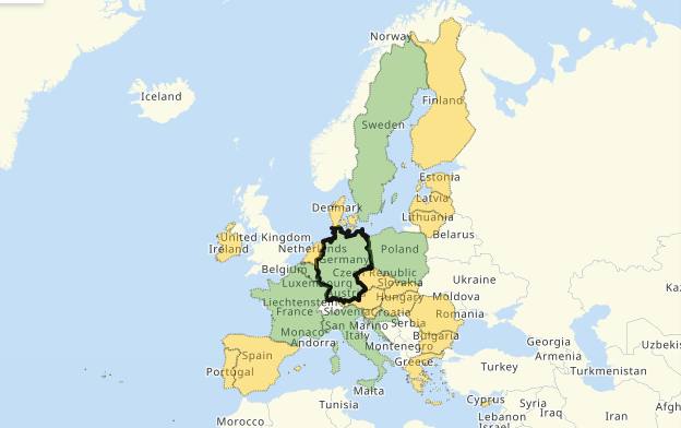 Un mapa en español exclusivo sobre los países de la Unión Europea, que muestra las restricciones que ofrece cada país.