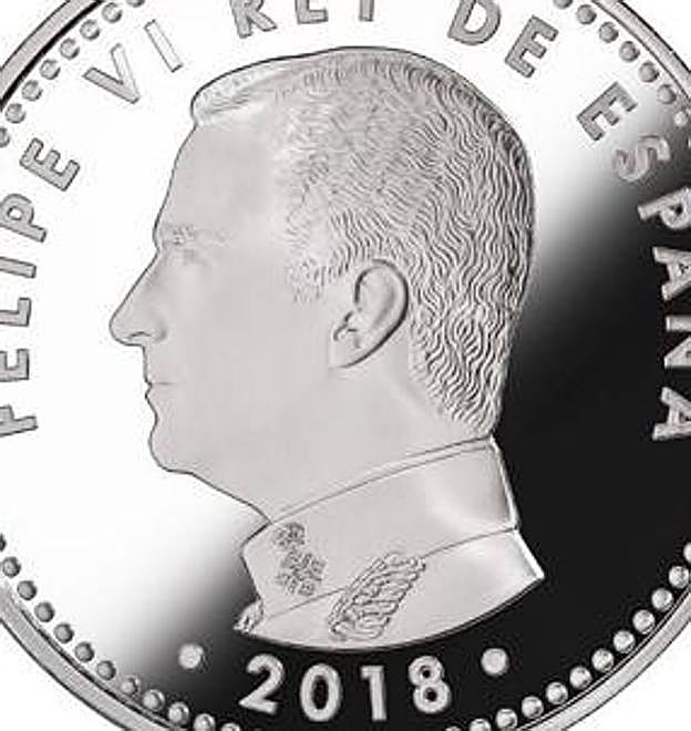 Por su parte, en el anverso de la moneda hay un retato de Felipe VI con sus distintivos de Capitán General, y se puede leer «FELIPE VI REY DE ESPAÑA».