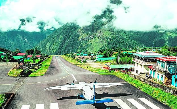 Destino de quienes suben al Everest, considerado desde hace dos décadas como el más peligroso del mundo. Carece de servicio de control aéreo y cuando un avión se acerca suena la alarma que avisa a los transeúntes de que despejen, porque ni hay luces ni garantía de que el avión que aterrice las lleve.