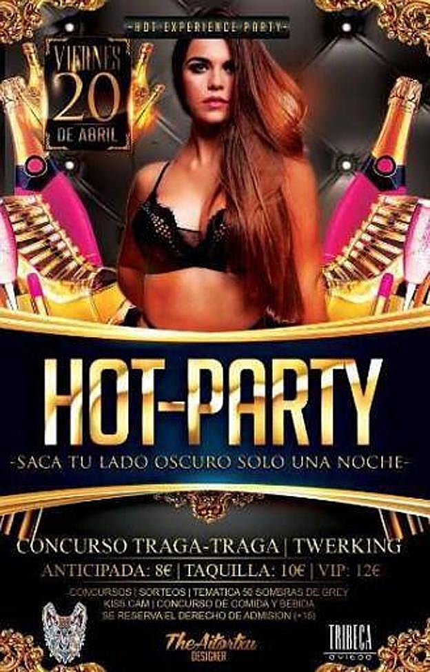 En concreto, el cartel anuncia una «hot-party», que podemos traducir como «fiesta caliente». En él aparece una mujer en ropa interior rodeada de botellas de champán rosa, además de incitar a los asistentes a la fiesta a sacar su «lado más oscuro».