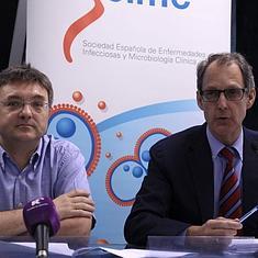 La Sociedad Española de Enfermedades Infecciosas y Microbiología Clínica (SEIMC) ha explicado hoy las escasas posibilidades qde que el ébola se expanda en España tras ... la muerte de Miguel Pajares. Rafael Cantón, vicepresidente de la SEIMC, y José Antonio Pérez Molina, infectólogo y vocal de SEIMC, han hecho hincapié en que se han seguido los protocolos correctos establecidos por la OMS y el virus "no es un patógeno que se transmita por el aire", por lo que haría falta un "contacto directo" para su contagio.