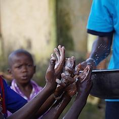 Voluntarios ayudan a prevenir el contagio del ébola en Guinea.
