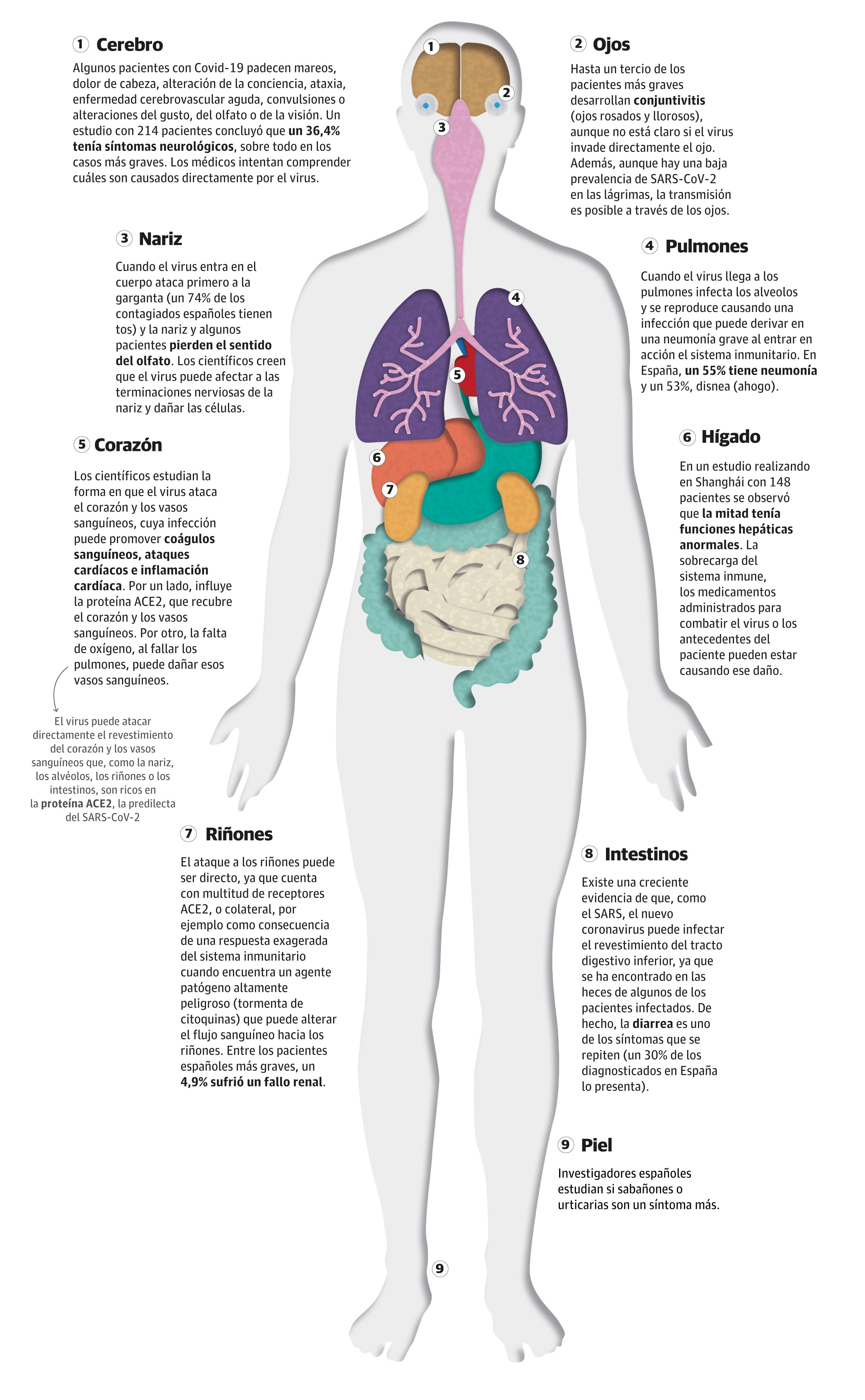 El SARS-CoV-2 hace de los pulmones su zona cero, pero son muchos más los órganos que se ven afectados por la enfermedad