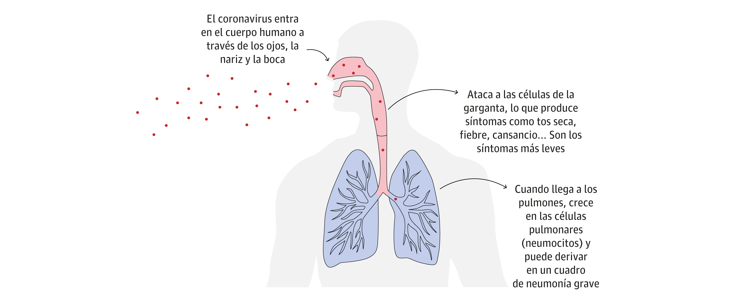 Como explica Benjamin Neuman, profesor de biología en Texas, en un artículo publicado en The Conversation, la Covid-19 que comienza como si fuera un simple resfriado común puede agravarse al activarse el sistema inmunitario. Este, en el intento de acabar con la infección, puede causar mayor daño a los pulmones e incluso la muerte.