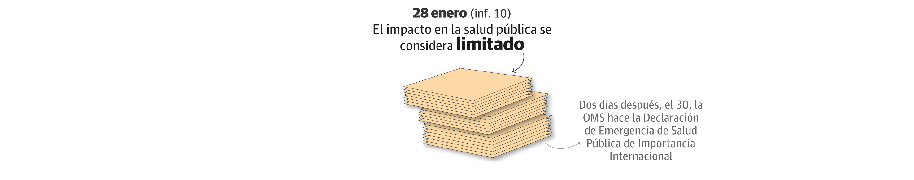 Nada hacía presagiar en esa primera hoja, ni en las informaciones que llegaban desde China, que el virus del mercado de Wuhan se iba a convertir en la pandemia del siglo. «El impacto para la salud pública en caso de introducirse el virus en nuestro país sería muy bajo», rezaba el texto. Una afirmación ahora lejana, pero que supone el inicio de una amenaza cuyo riesgo, de muy bajo a moderado, varió al alza y a la baja en cinco ocasiones hasta la aprobación del primer estado de alarma.