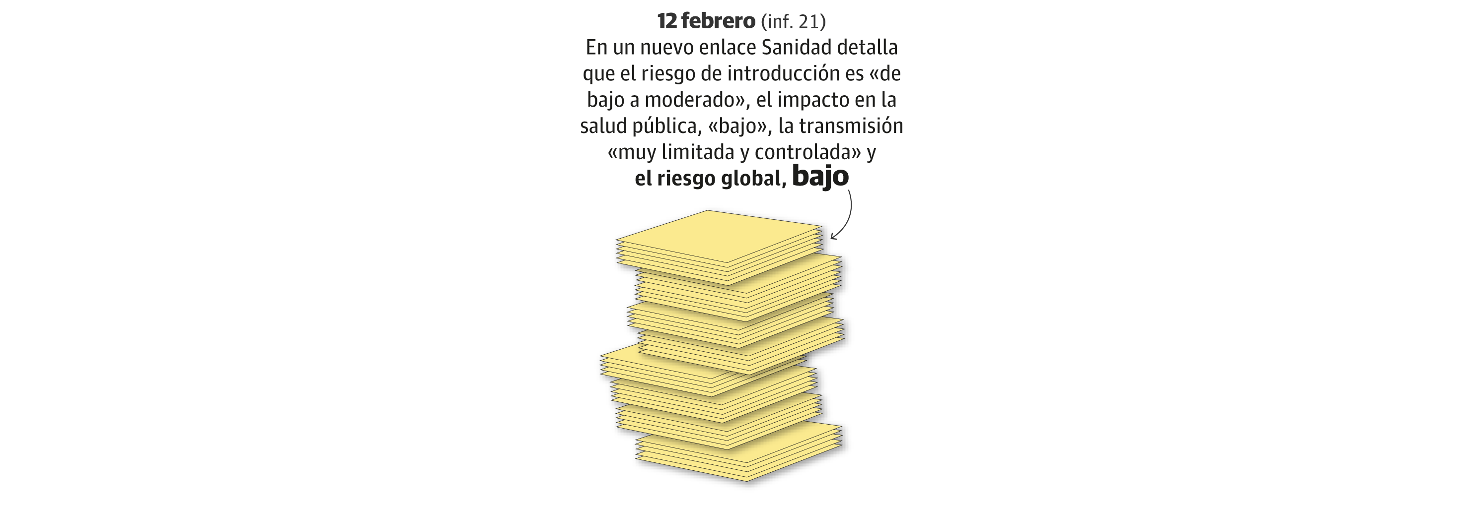 Coincide que en esos días Sanidad derivó la evaluación del riesgo a un enlace aparte de la nota diaria, que después sería para «profesionales». El segundo de estos enlaces fue actualizado hasta el 24 de febrero.