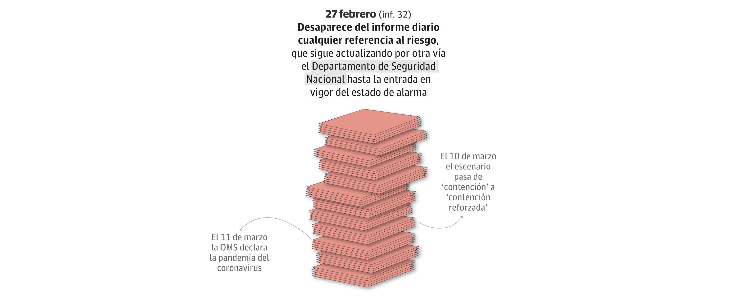 Con esta situación, el día 27, con 16 casos en España, desaparece del informe cualquier alusión al riesgo.
