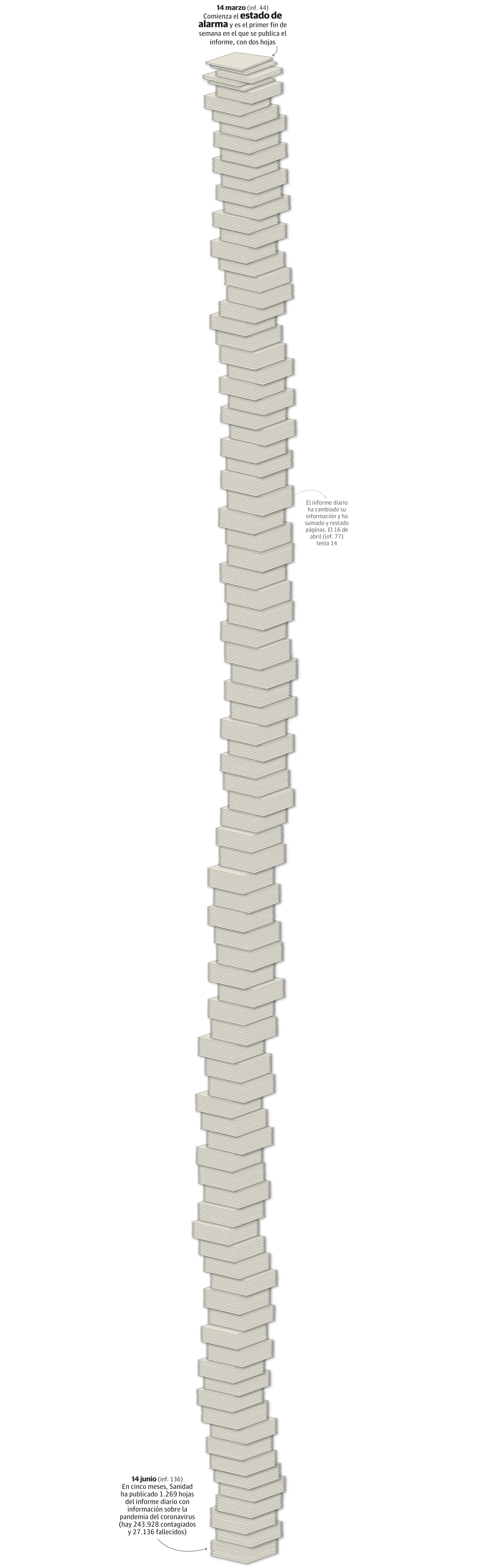 El Ministerio de Sanidad comenzó a publicar sus informes diarios por el coronavirus el 15 de enero, ocho días después de ser identificado el brote. Entonces faltaban 16 días más para que se conociera el primer contagiado en España y cinco meses para sumar 27.136 muertos.