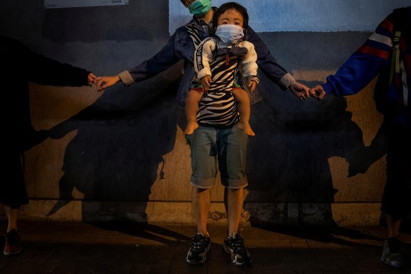 Leah Millis / Reuters Una familia protesta unida en Hong Kong, aunque con mascarillas