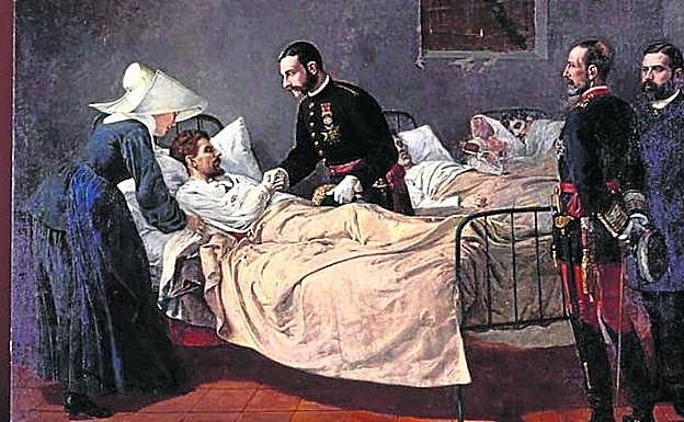 La sangre llegó al río cuando se decretó el cierre de comercios y estalló el conocido como 'Motín de las Banderas Negras' -«No hay cólera, lo que hay es hambre», gritaba la muchedumbre»- y dos jóvenes murieron por disparos de la Guardia Civil. «Hasta el Ejército salió a la calle y Cánovas, ansioso por quitarse de encima esa patata caliente que era la gestión de la crisis, amenazó con dimitir», ilustra Javier Puerto. En medio de aquel guirigay, Alfonso XII, a quien el Gobierno había prohibido salir, se plantó en Aranjuez el 2 de julio y visitó a los soldados enfermos, lo que desató un recibimiento apoteósico en la estación. «El rey, de quien se ignoraba aún si se había contagiado o no, abrazó a su mujer y sólo después fue con los sanitarios a que lo fumigasen». De poco le sirvió aquel gesto. Moriría antes de cinco meses y no de cólera. si no de tuberculosis.