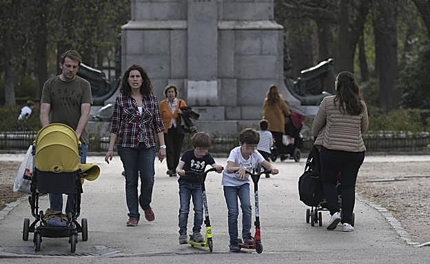 Los parques de Madrid se convirtieron este miércoles en improvisados patios de colegios para miles de niños en su primer día sin clase por el ... coronavirus. El buen tiempo, 25 grados llegó a alcanzar la capital, favoreció que los más pequeños y sus padres y, sobre todo, abuelos decidiesen estrenar sus vacaciones forzadas al aire libre. «No pueden estar encerrados en casa, tienen que salir un rato al parque», explica Elsa, madre de Bruno, de dos años, y Nico, de seis.