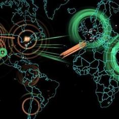Imagen del mapa elaborado por la consultora Norse Corp durante los ataques.