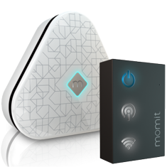 Con la ayuda de dos componentes, momit Cool puede funcionar a distancia. Tan solo es necesario un smartphone y un equipo triangular que se debe colocar del receptor de infrarrojos del aire acondicionado y que se encargará de conectarlo al móvil y a Internet por medio de un segundo dispositivo enchufado directamente al router de casa por cable Ethernet.