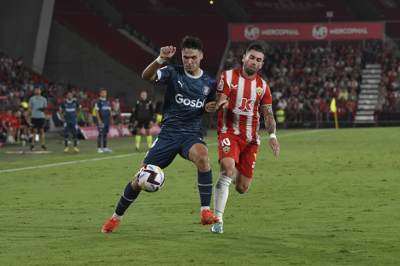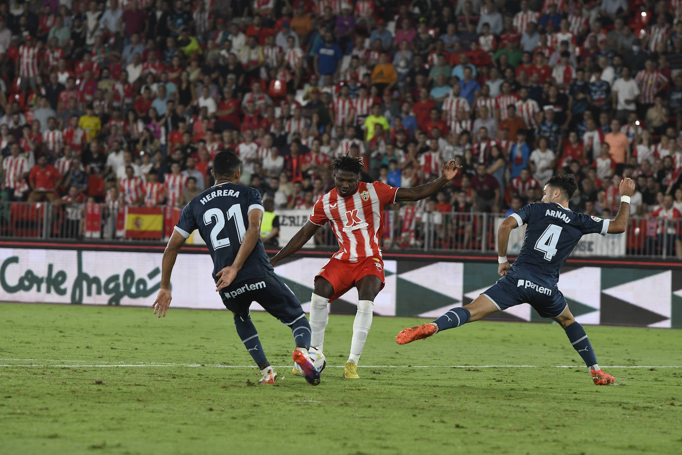 El equipo indálico tenía el partido en su mano como consecuencia de un buen trabajo defensivo, cortocircuitando las bandas, poniéndole freno a las subidas por banda de Arnau Martínez y de Miguel Gutiérrez. Además, tampoco hizo cómoda la tarde para jugadores como Rodrigo Riquelme y Aleix García, un jugador con un gran rendimiento en el pase, casi siempre en campo rival, un equipo con mucho acierto en el pase ofensivo. Y es que los rojiblancos maniataron al conjunto de Míchel, incapaz de encontrar salidas, con Riquelme solo en la propuesta. De hecho, el tercero estuvo cerca en el 32, pero Santi Bueno evitó la acción generada entre Leo Baptistao y Adrián Embarba, generando un mano a mano que sacó el central del conjunto gerundense.
