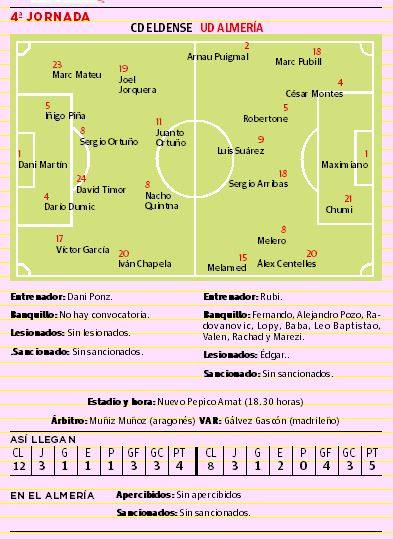 El equipo de Dani Ponz se adapta a cualquier escenario. Intenso en la presión, trata de hacer lo que un día llevó a cabo Unai Emery en la UDA o en el Valencia, exprimir el balón parado, una faceta del juego en la que todo se iguala. No tiene bajas y podrían debutar el exrojiblanco Iván Martos y el portugués Chico Geraldes y con jugadores interesantes como Marc Mateu, Timor, Álex Bernal o Sergio Ortuño.