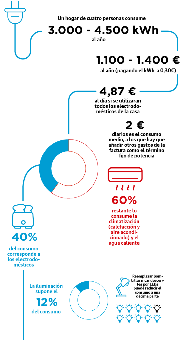 «Para adelgazar la factura de la luz también conviene espaciar el uso de los electrodomésticos a lo largo del día para no tener que contratar mucha potencia y aprovechar las horas más baratas para encender los aparatos que más consumen», añaden. Al margen de los pequeños ahorros, se debe tener en cuenta que en una vivienda siempre hay un consumo de base, que incluye el frigorífico y todos los aparatos que se dejan siempre encendidos como la caldera, el router o los altavoces inteligentes.