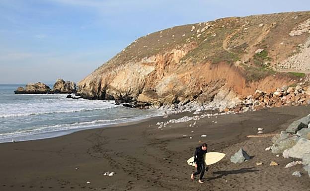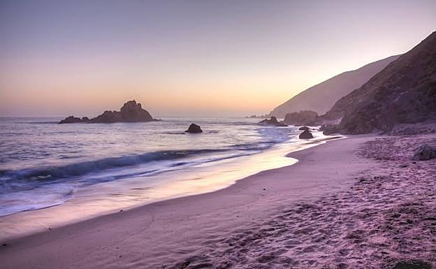 Arena púrpura: una playa de surfistas en California