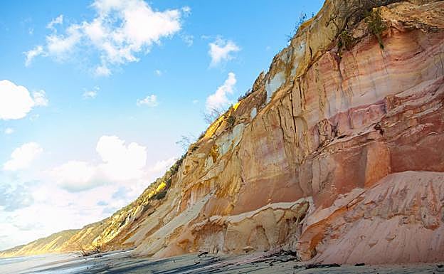Rainbow Beach, en la isla australiana de Fraser, es imposible de clasificar por una tonalidad concreta, puesto que su arena muestra más de 70 colores diferentes, gracias a las olas y los vientos. La mayoría de los tonos que visten la playa también se puede ver en los acantilados que la rodean y que se formaron durante la última edad de hielo. Las rocas encierran tantos colores que las comparan con los colores de un sorbete de arcoíris. «Es un verdadero placer cavar en la arena y ver las capas de diferentes colores, con bandas que crean una nueva obra de arte con cada barrido de la mano», invita Jesús Ángel Blanco.