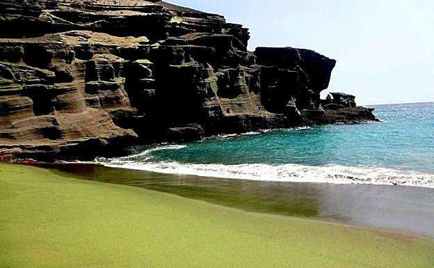 Dos de los lugares del mundo donde podemos encontrar más fácilmente arenales de color verde son las islas de Hawai –Papakolea es de las más espectaculares– y Galápagos, pero no son los únicos. De hecho, hay playas de este tono en zonas volcánicas mucho más cercanas como, por ejemplo, en el archipiélago canario. «Este tipo de arena está compuesta principalmente de cristales de olivino que erosionan el basalto (lava). Estos cristales son más pesados y hace que se queden depositados en la playa mientras que los granos de arena más ligeros son lavados por la actividad del fuerte oleaje. El olivino es un mineral de silicato que contiene hierro y magnesio», apunta Franco.