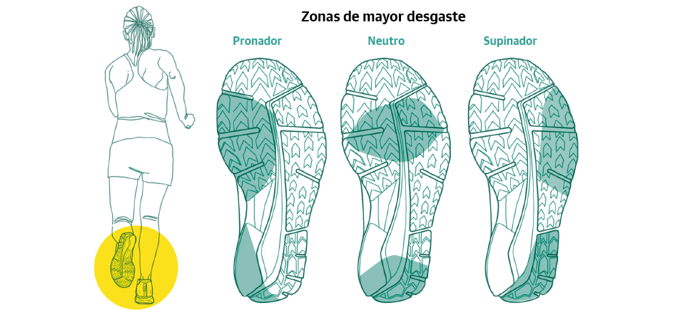 Dependiendo de la pisada, el apoyo del pie pasa desde el talón o el medio pie hasta la zona de los dedos.