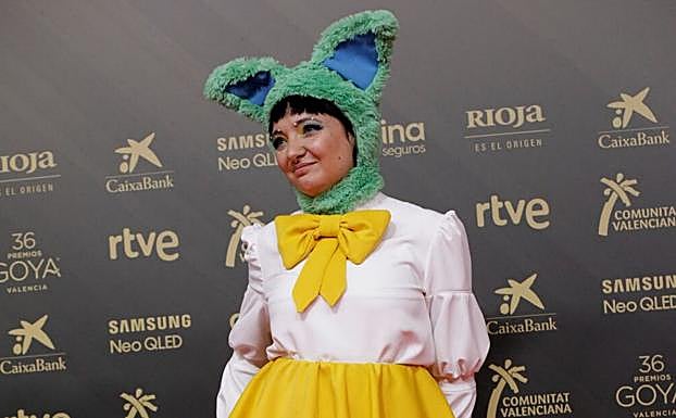 La directora apareció en la alfombra roja de esta guisa, como un peluchito, haciendo un guiño al personaje de su corto. «Si tienes que llamar la atención así... malo –indica Bellón–. Pero siempre está bien lo divertido y jugar un poco»